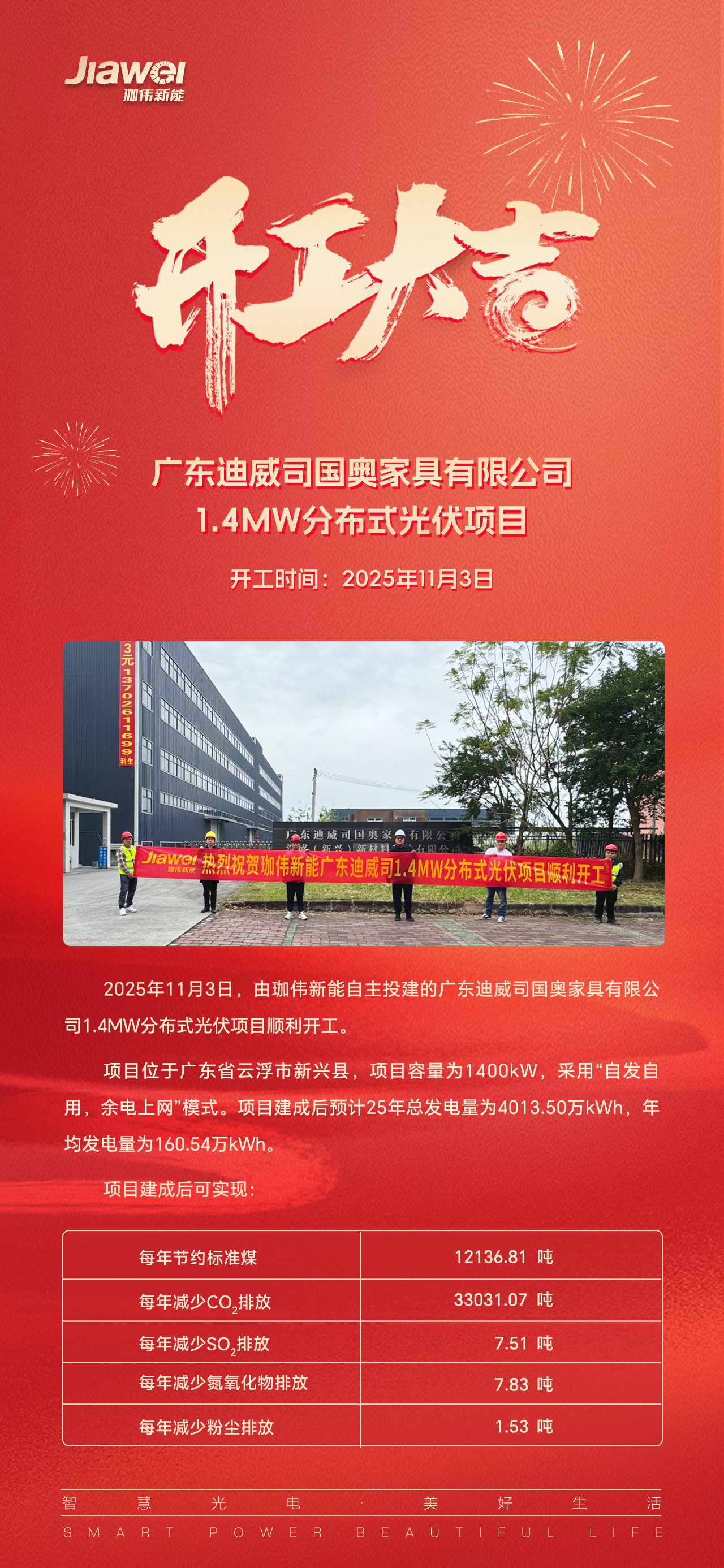 喜報 | 廣東迪威司國奧家具有限公司 1.4MW分布式光伏項目順利開工