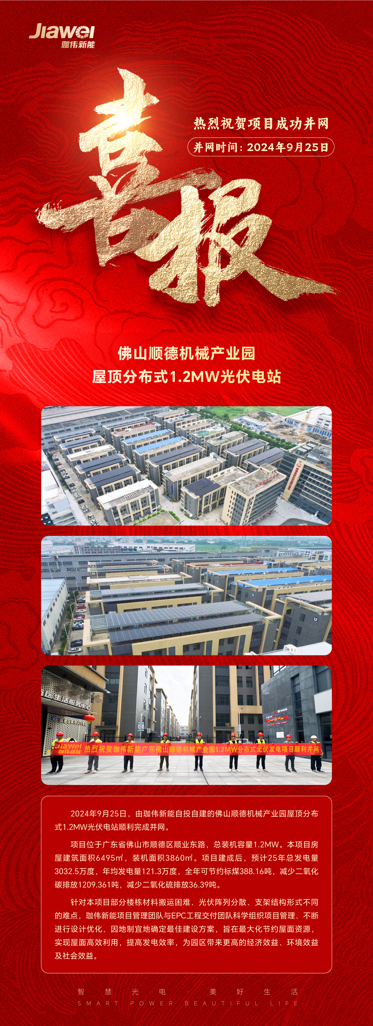 喜報 | 熱烈祝賀佛山順德機械產業園屋頂分布式1.2MW光伏電站順利并網發電!
